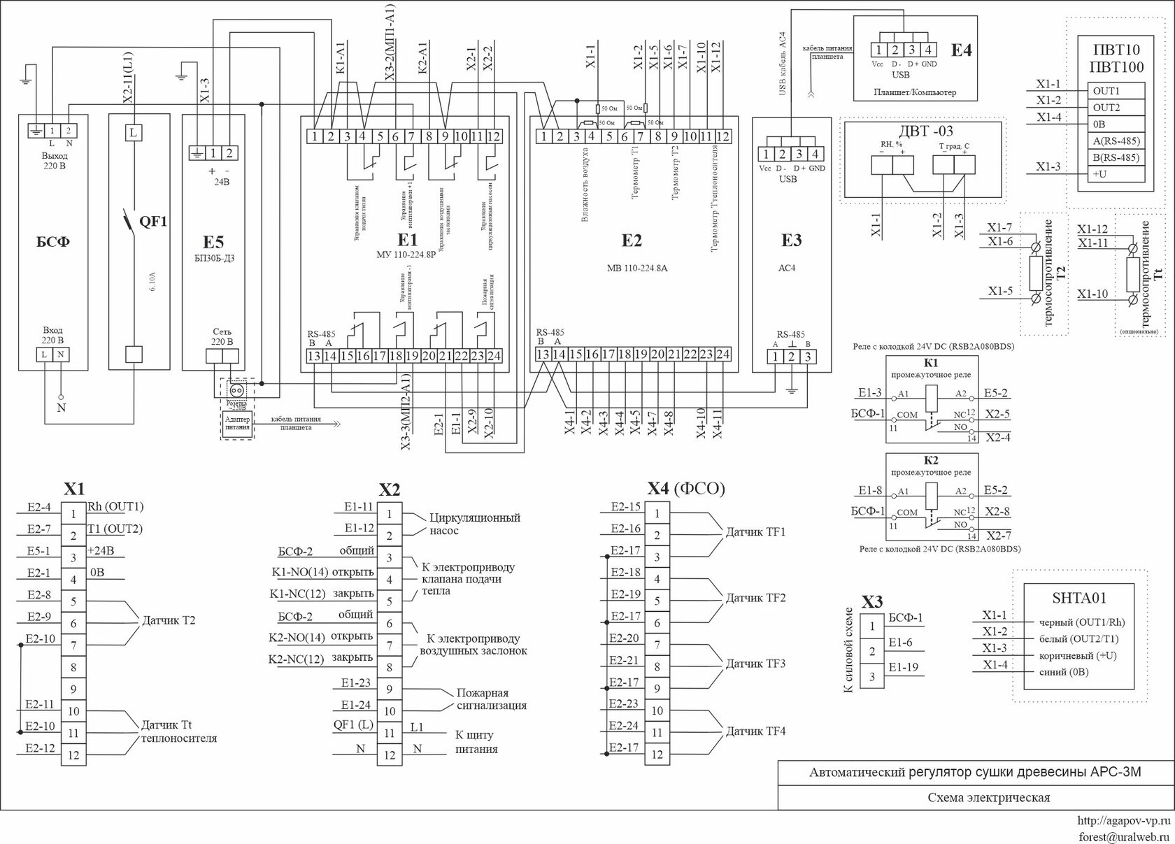 Для питания электронных модулей и основного датчика используется блок питания (Е5) на 24В.