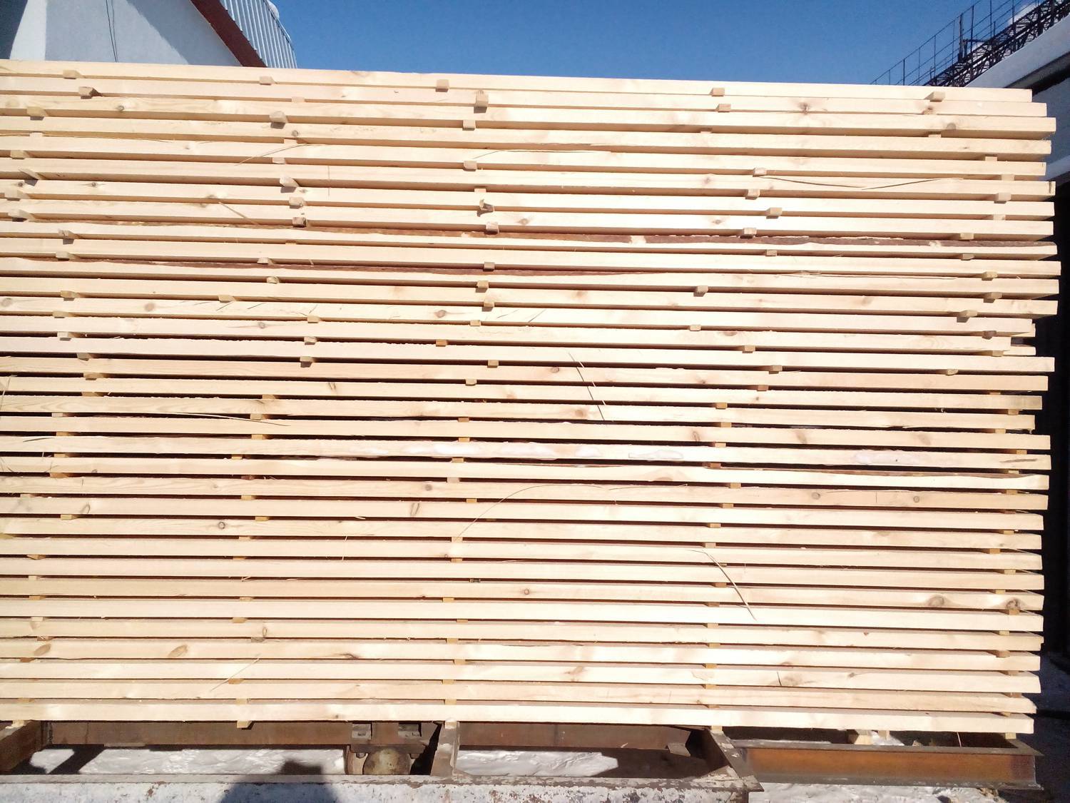 Основная физическая задача вентиляторов в сушильной камере заключается в переносе тепловой энергии от более нагретого калорифера к менее нагретому штабелю при помощи агента сушки - воздуха. Наиболее востребована функция вентиляторов в период прогрева камеры и при поднятии температуры штабеля после очередного снижения температуры и выброса избытка влаги. Т.к. в нашей технологии применяется осциллирующий температурный режим (плавный нагрев штабеля и последующее охлаждение на 10-15°С), то в периоды снижения температуры штабеля и при выбросе влаги, вентиляторам достаточно включаться лишь изредка для выравнивания параметров агента сушки по всему объему камеры.